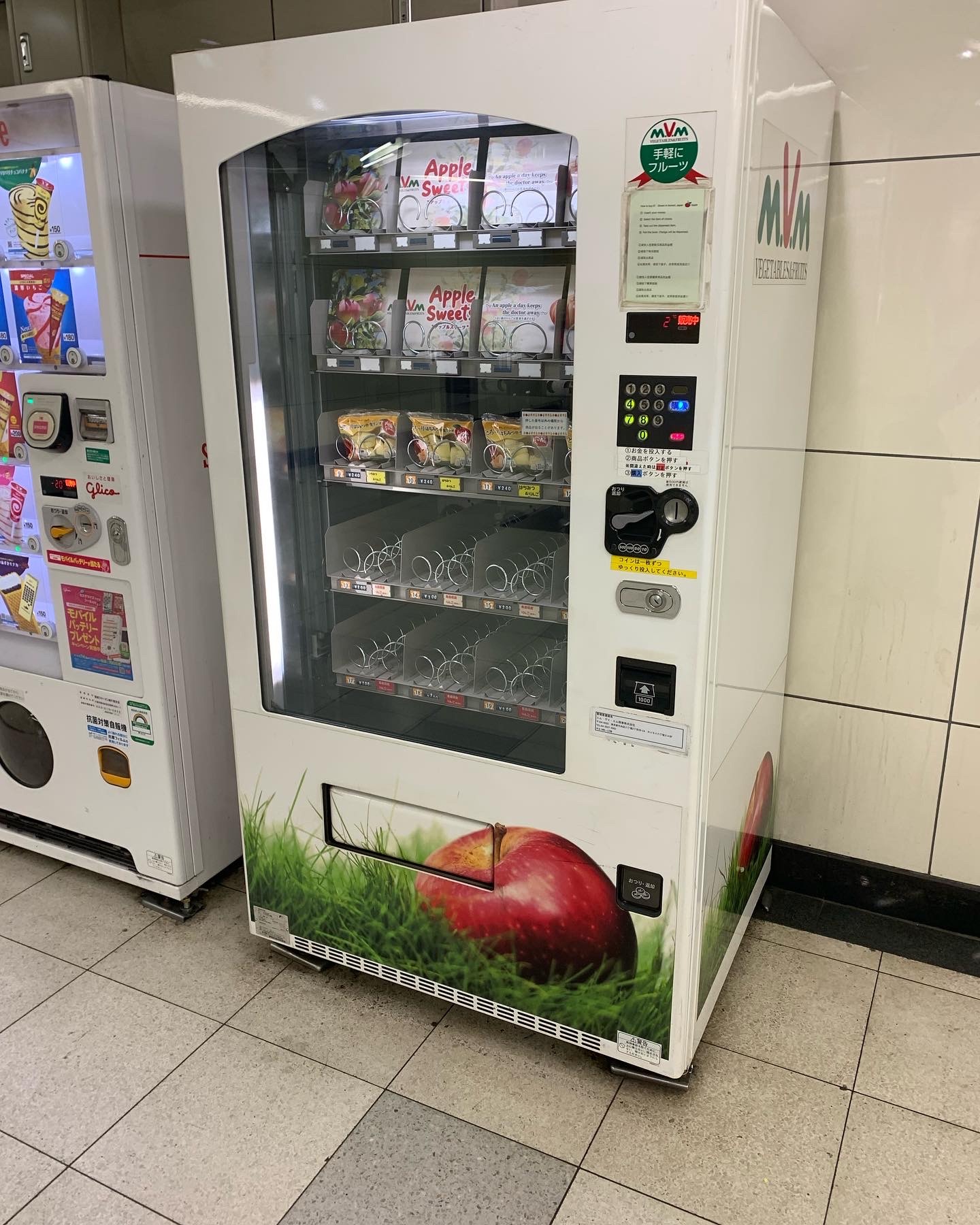 昨日押上駅にて面白い自販機を発見!りんごの自販機でした🍎このような取り組みもいいですね!#果物 #りんご#🍎#もも#🍑#福島#りんごの自販機#若手農家#若手農家さんと繋がりたい